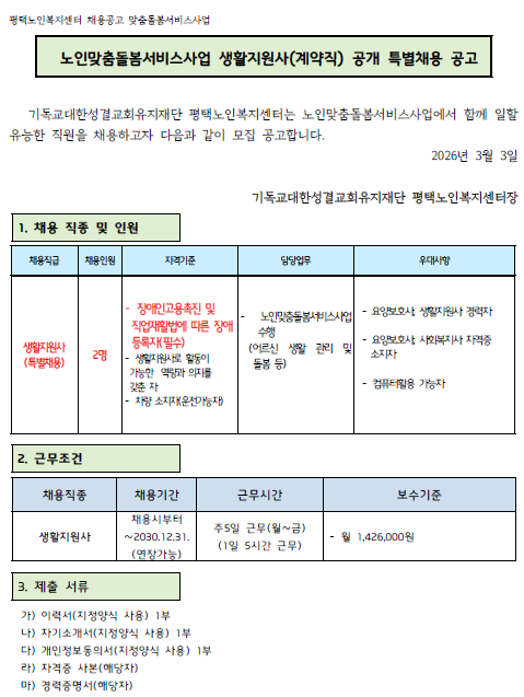 ³ëÀθÂÃãµ¹º½¼ºñ½º»ç¾÷ »ýȰÁö¿ø»ç(°è¾àÁ÷) °ø°³ Ưº°Ã¤¿ë °ø°í