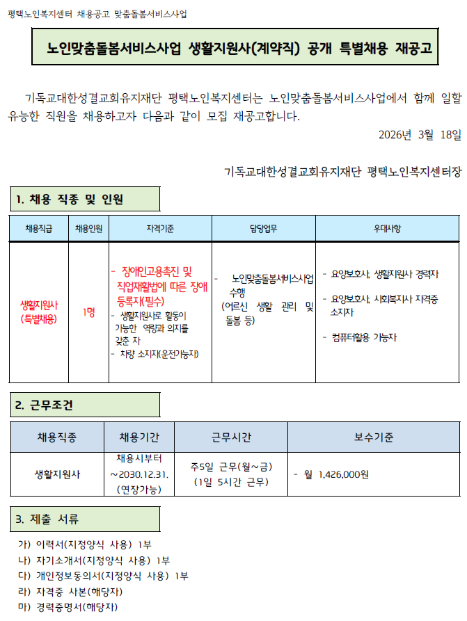 | ³ëÀθÂÃãµ¹º½¼ºñ½º»ç¾÷ »ýȰÁö¿ø»ç(°è¾àÁ÷) °ø°³ Ưº°Ã¤¿ë Àç°ø°í | |||